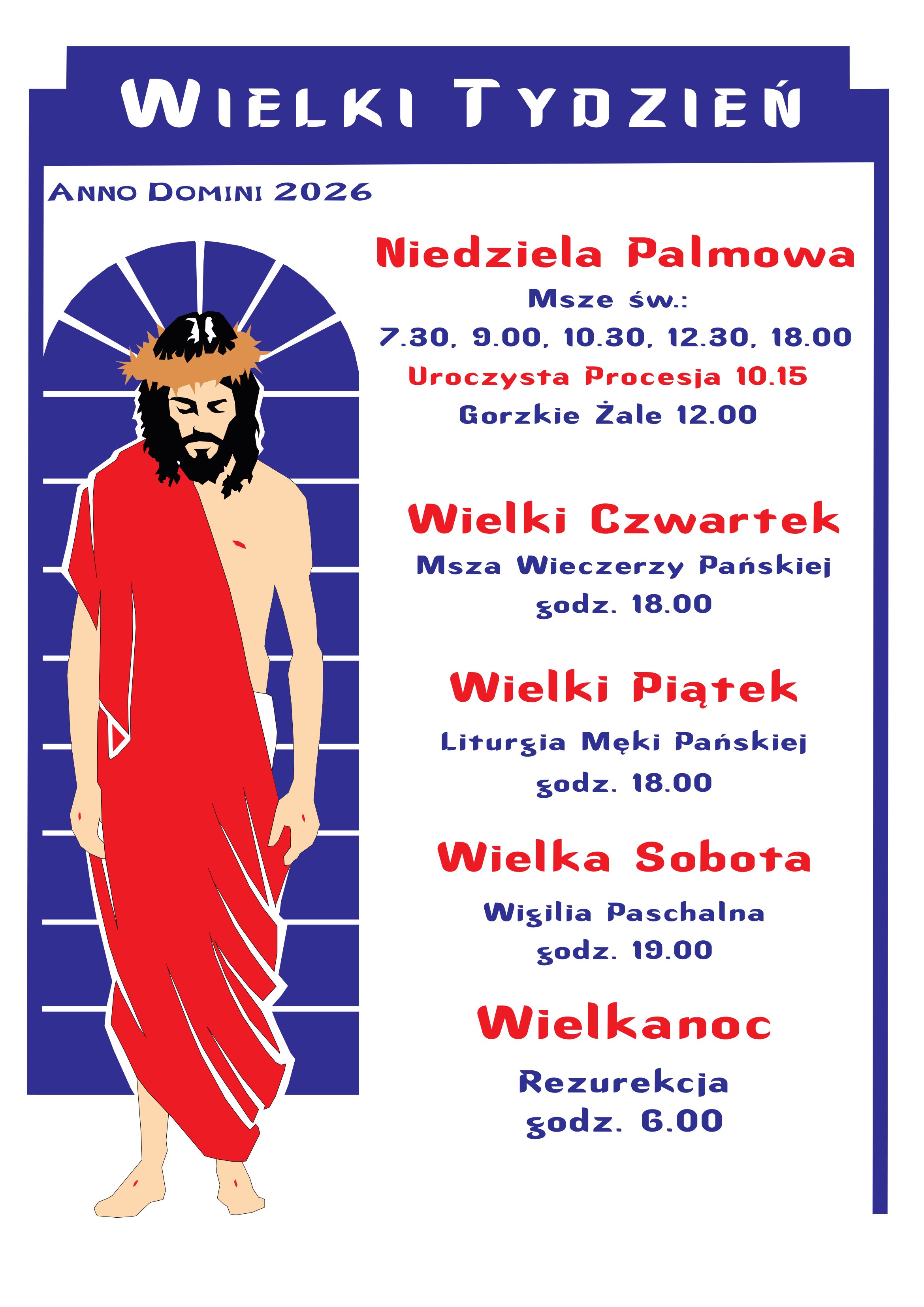 Godzinowy rozkład nabożeństw w Wielkim Tygodniu