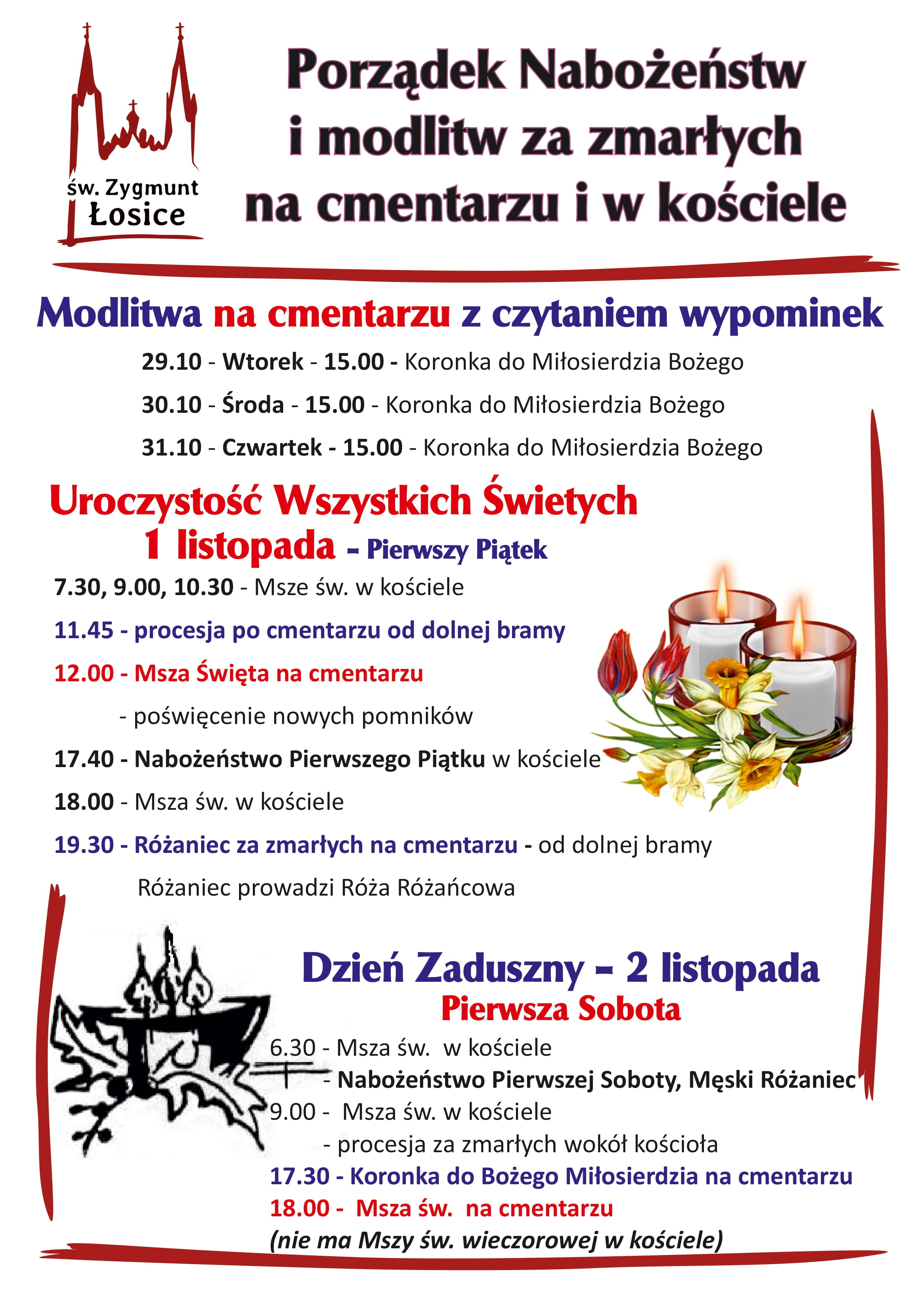 Porządek nabożeństw w naszym kościele i na cmentarzu