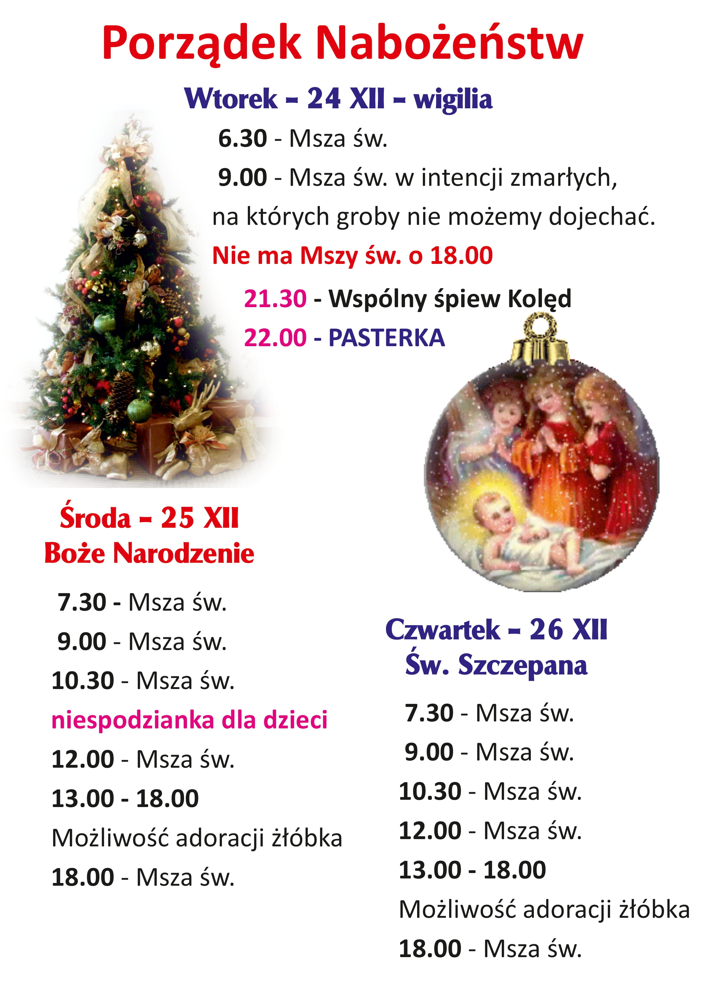 Porządek nabożeństw w czasie Świąt Bożego Narodzenia